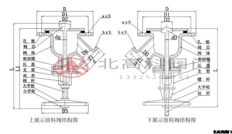 上展式、下展式放料閥結(jié)構(gòu)圖